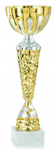 Strieborno - zlatý pohár na mramorovom podstavci, na ktorý je možné umiestniť štítok s vygravírovaným textom.