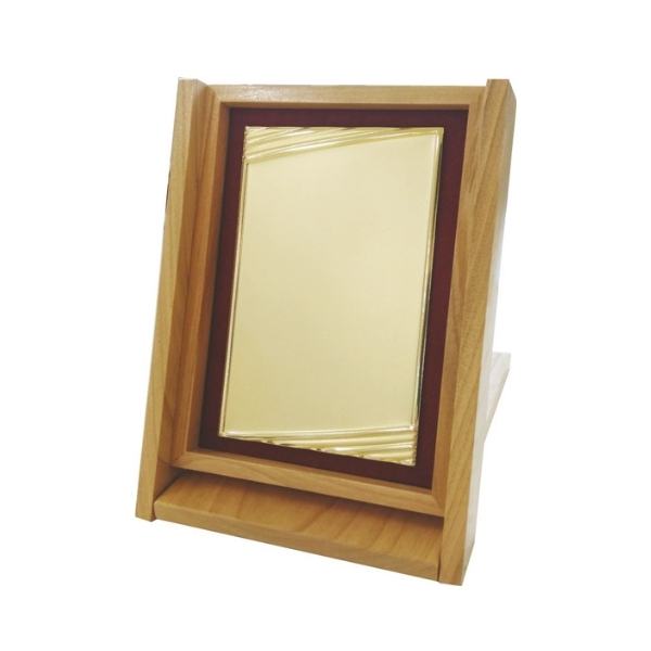 Drevená vyklápacia krabička, s vloženou kovovou plaketou, vhodnou pre farebnú potlač.Rozmer krabičky : 11 x 16 x 3,5 cm.