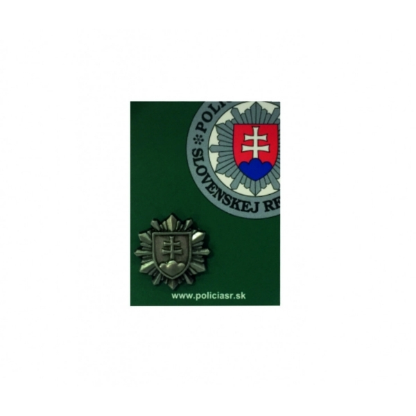 Kovový odznak Policajného zboru v 3D prevedení s veľkosťou 1,7 cm v striebornej patine.
