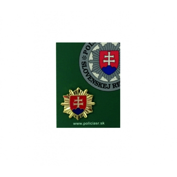 Kovový odznak Policajného zboru v 3D prevedení s veľkosťou 1,7 cm a zlatou leskou farbou.
