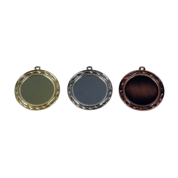 Medaila o priemere 7 cm, v medaili je umiestený kruh do torého je možné vložiť emblém, alebo piktogram športu, poprípade text ( umiestnenie a pod.). Priemer emblému je 5 cm.