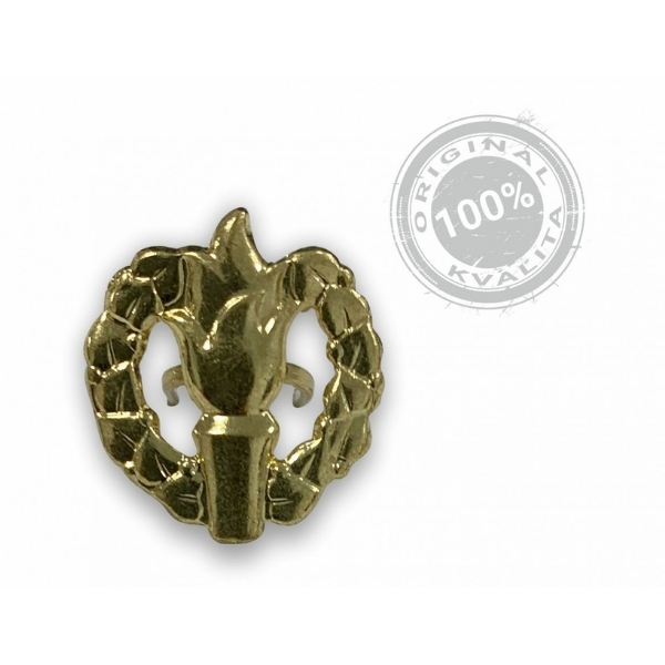 Kovový zlatý rozlišovací znak preventívno výchovnej činnosti na vrchné príklopky goliera saka a na služobnú rovnošatu. Veľkosť odznaku 20 mm.