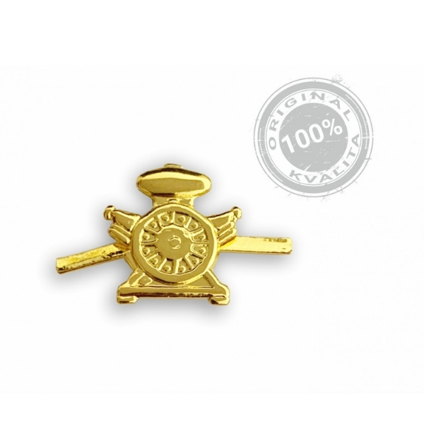 Kovový zlatý rozlišovací znak strojníkov na vrchné príklopky goliera saka a na služobnú rovnošatu. Veľkosť odznaku 20 mm.