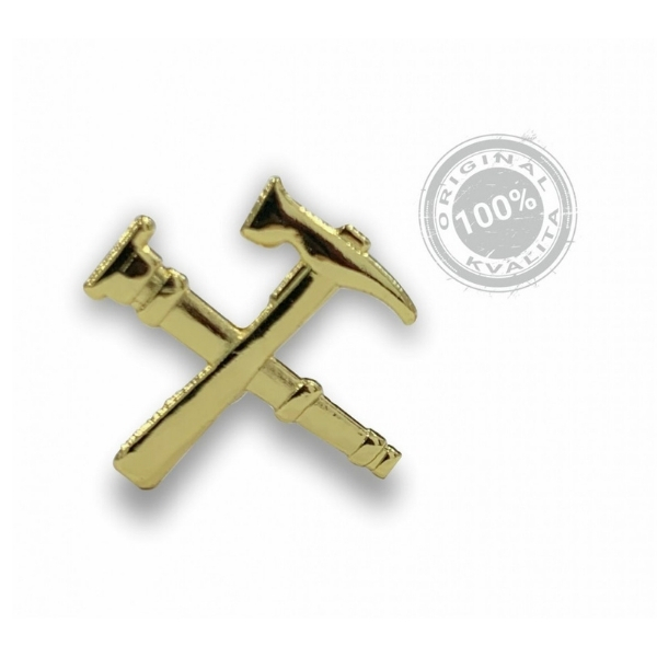 Kovový zlatý rozlišovací znak protipožiarnej represie ( zásahová jednotka ) na vrchné príklopky goliera saka a na služobnú rovnošatu. Veľkosť odznaku 17 mm.