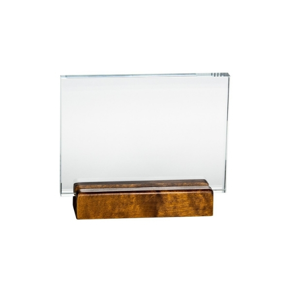 Sklenená plaketa zasunutá do dreveného podstavca. Trofej má výšku 12,5 cm a šírku 17,5 cm. Sklo je 1 cm silné.